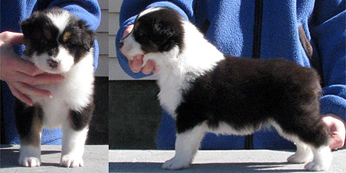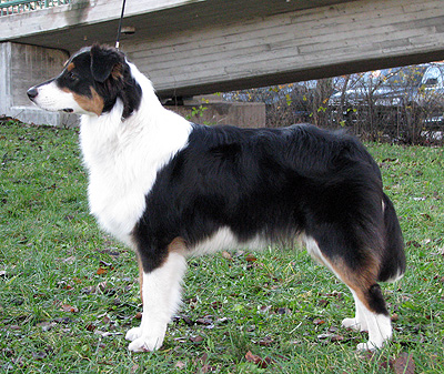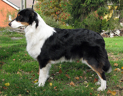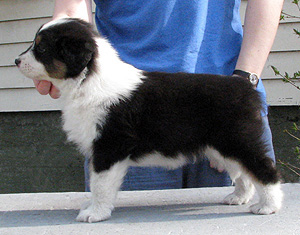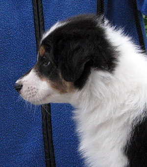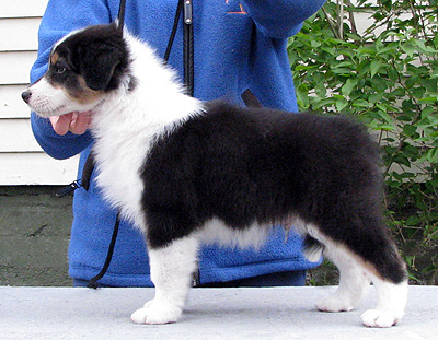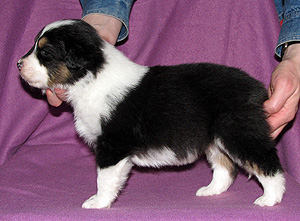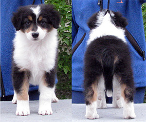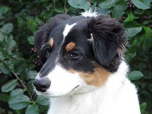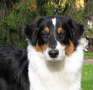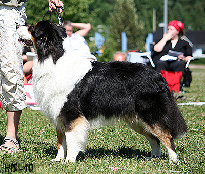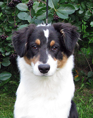 Born: 19.03.08 Sex: male HD: B-B OD: 0-0 Eyes: HSF-4 clear by parentage, HC, PRA, CEA, ICO clear both as a puppy and as an adult Tail: long | Colour: black tricolour Eye colour: brown Bite: scissors bite, full dentition Size: 39cm at 3 months, 45cm at 4 months, 51cm at 5 months, 53cm at 6 months, 56cm at 13 months Owner: Päivi Tommiska, Klaukkala |