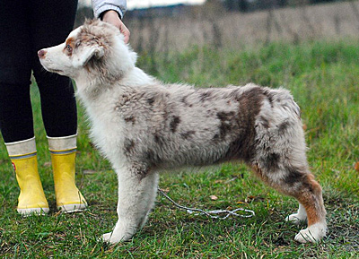 Born: 21.06.18 Sex: dog HD: A-A OD: 0-0 Eyes: HSF-4 clear by parentage, HC, PRA, CEA, ICO clear as a puppy Tail: NBT | Colour: red merle Eye colour: hazelbrown Bite: scissors bite, full dentition Size: 37cm at 3 months, 41,5cm at 4 months Owner: Stina Rautomaa, Espoo |