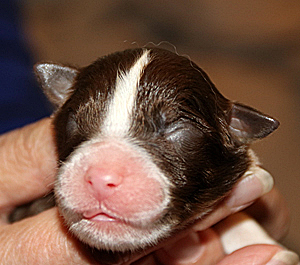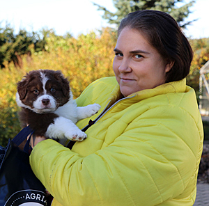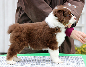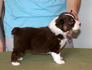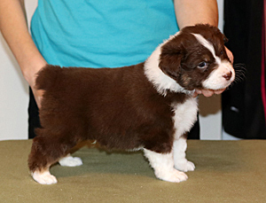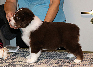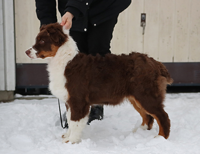 Born: 25.08.21 Sex: male HD: C-B OD: 0-0 Eyes: cleared as a puppy Tail: NBT | Colour: red tricolour Eye colour: hazelbrown Bite: scissors bite, full dentition Size: 47cm at 5 months, 48,5cm at 6 months Owner: Anna-Mari Ohtonen, Salo |