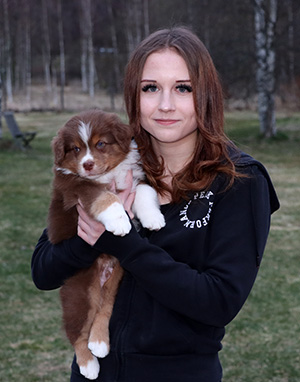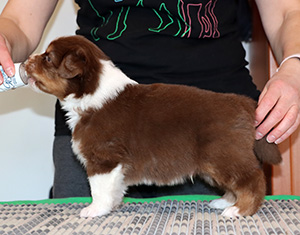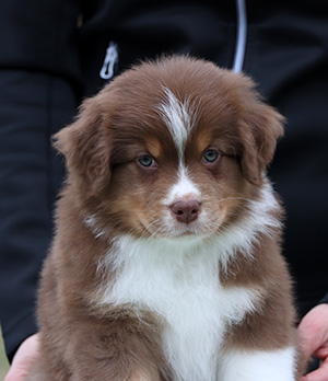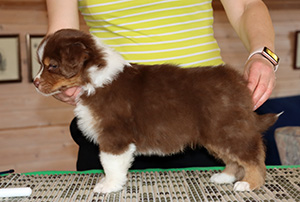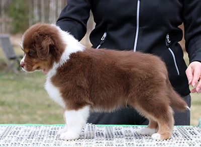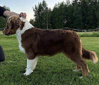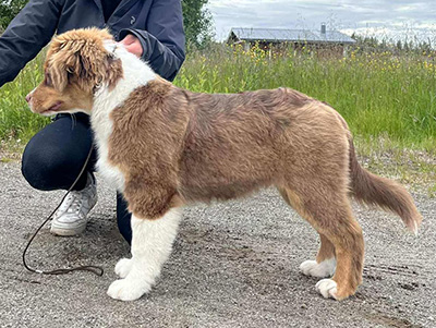 Born: 25.02.25 Sex: male HD: OD: Eyes: cleared as a puppy Tail: long | Colour: red tricolour Eye colour: hazelbrown Bite: scissors bite, full dentition Size: Owner: Ellen Ala-Hiiro, Lapua |