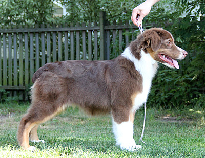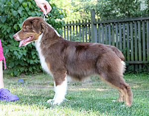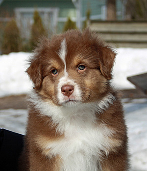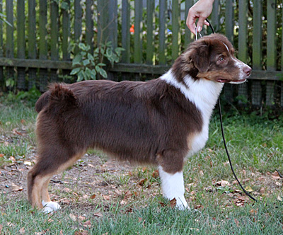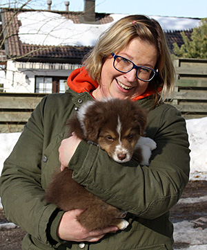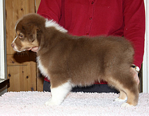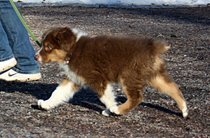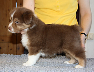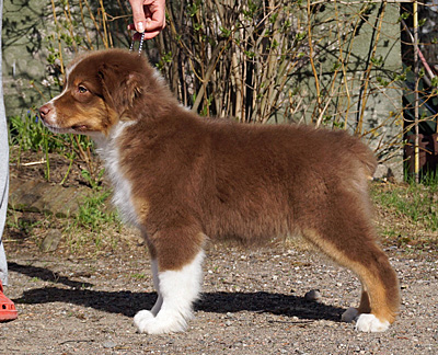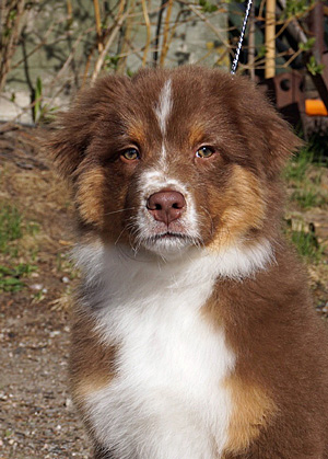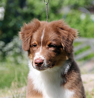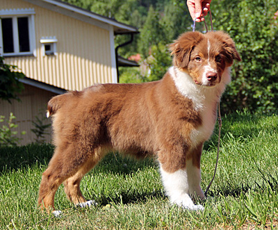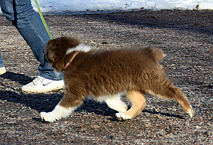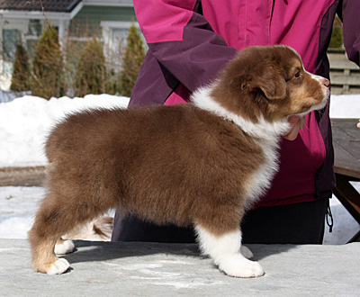 Born: 10.02.13 Sex: male HD: C-D OD: 0-0 Eyes: HSF-4 clear by parentage, HC, PRA, CEA, ICO clear as a puppy Tail: NBT | Colour: red tricolour Eye colour: amber Bite: scissors bite, full dentition Size: 36cm at 3 months, 41,5cm at 4 months, 45,5cm at 5 months, 48,5cm at 6 months, 51cm at 7 months, 53cm at 10 months Owner: Milla Vasama, Veikkola |