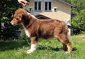 Mårten is 2,5 years old in the photo. Mårten won his first CAC with a BOB at Lohja 08.06.2014 under Mr Derek Smith, GB. Mårten passed FCI Herding Instinct test at Somero 05.08.2014. Mårten passed his temperament test 01.10.2017 being secure to gunshots.