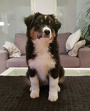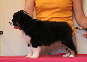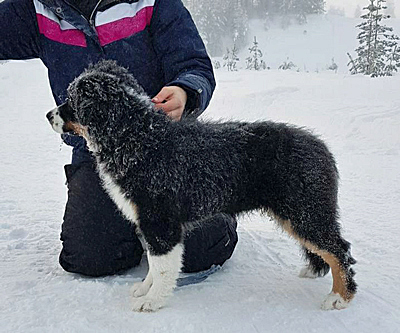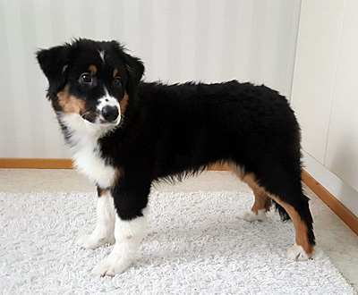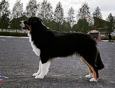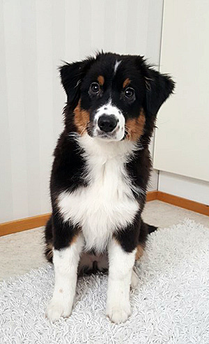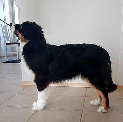 Born: 17.10.17 Sex: bitch HD: OD: Eyes: HSF-4 clear by parentage, HC, PRA, CEA, ICO clear as a puppy Tail: long | Colour: black tri Eye colour: brown Bite: scissors bite Size: Owner: Marjo Pitkänen, Kuusamo |