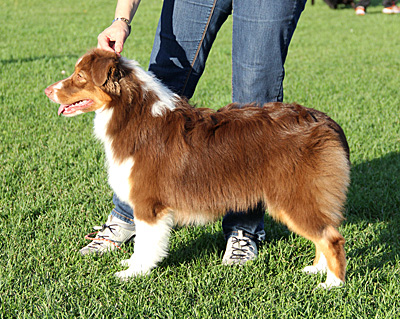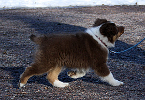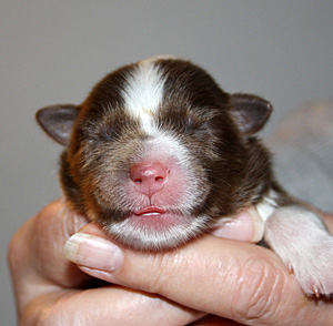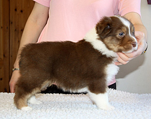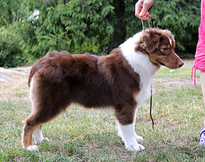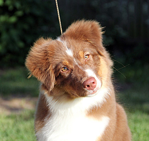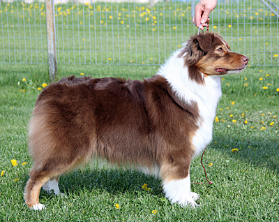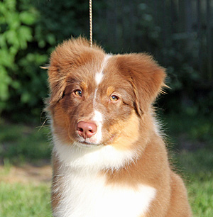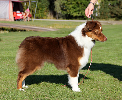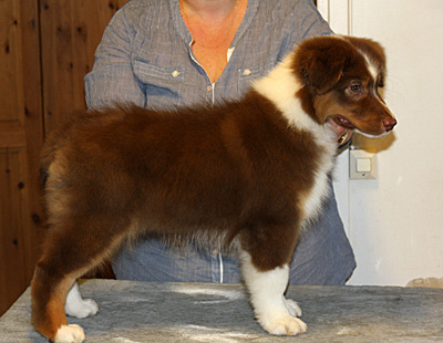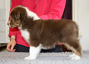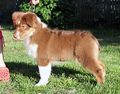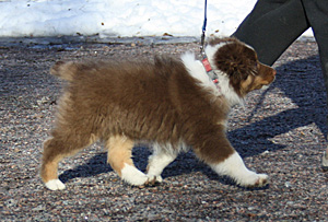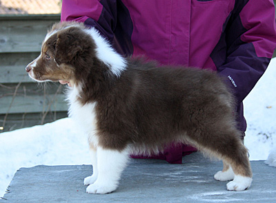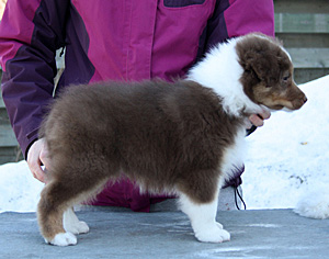 Born: 10.02.13 Sex: bitch HD: A-A OD: 0-0 Eyes: HSF-4 clear by parentage, HC, PRA, CEA, ICO clear as a puppy Tail: NBT 1/4 | Colour: red tricolour Eye colour: amber Bite: scissors bite, full dentition Size: 35cm at 3 months, 40cm at 4 months, 44cm at 5 months, 45,5cm at 6 months, 47cm at 7 months, 47,5cm at 10 months Owner: Drover's & Riitta Nenonen, Lohja |