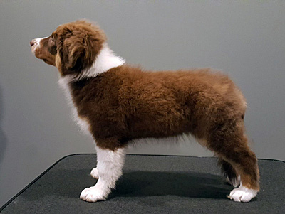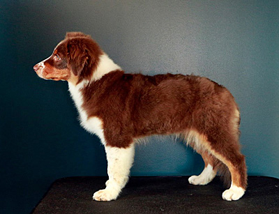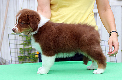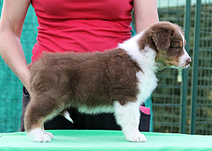 Born: 21.06.18 Sex: bitch HD: OD: Eyes: HSF-4 clear by parentage, HC, PRA, CEA, ICO clear as a puppy Tail: long tail | Colour: red tri Eye colour: brown Bite: puppy bite Size: 38cm at 3 months, 41cm at 4 months Owner: Veera Horto, Kuopio |
