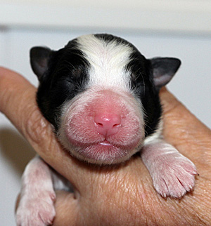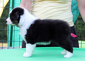 Born: 21.06.18 Sex: bitch HD: A-A OD: 0-0 Eyes: HSF-4 clear by parentage, HC, PRA, CEA, ICO clear as a puppy Tail: NBT | Colour: black tri Eye colour: brown Bite: scissors bite, missing 1xP3 Size: 37cm at 3 months, 42,5cm at 4 months, 46,5cm at 5 months, 51cm at 5 years Owner: Jaana Lilja, Turku |