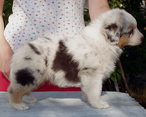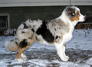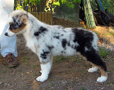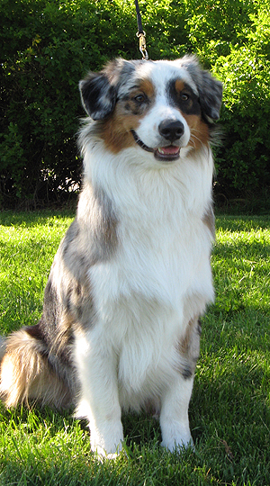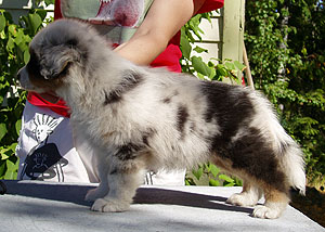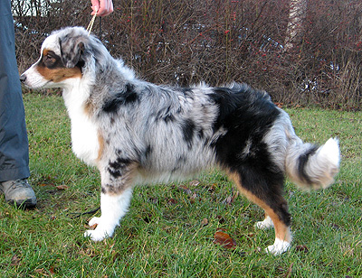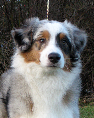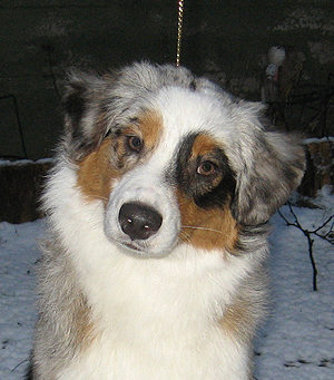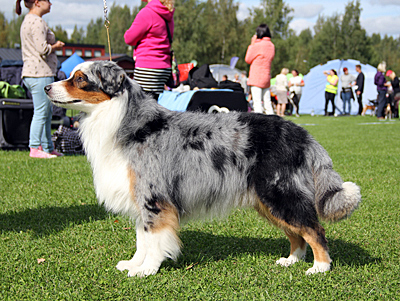 Syntynyt: 15.06.06 Sukupuoli: uros HD: A-B OD: 0-0 Silmät: HC, PRA, CEA, ICO vapaa sekä pentuna että aikuisena, DNA testattu terveeksi HSF4-tyypin kaihista Häntä: pitkä | Väri: blue merle Silmien väri: ruskeat Purenta: leikkaava purenta, kaikki hampaat Koko: 36,5cm 3-kuisena, 41cm 4-kuisena, 44cm 5-kuisena, 47,5cm 6-kuisena, 49cm 7-kuisena, 50cm 8-kuisena, 51cm 9-kuisena, 51,5cm 12-kuisena Omistaja: Sanna Kumpumäki, Karjalohja |