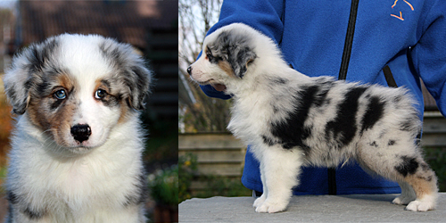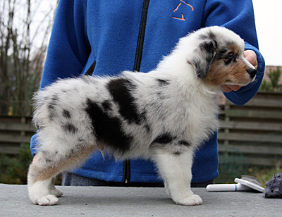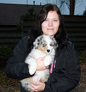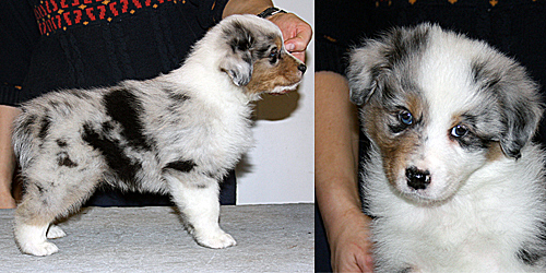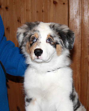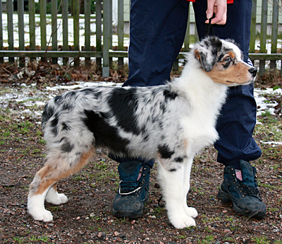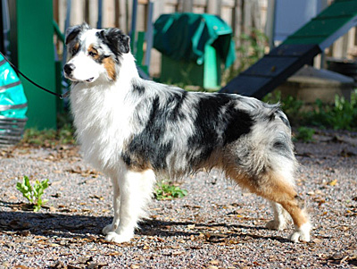 Syntynyt: 05.09.11 Sukupuoli: uros HD: C-D OD: 0-0 Silmät: HSF-4 vapaa vanhempien kautta, HC, PRA, CEA, ICO vapaa Häntä: NBT 1/4 | Väri: blue merle Silmien väri: merleväriset Purenta: leikkaava purenta, kaikki hampaat Koko: 37,5cm 3-kuisena, 43cm 4-kuisena, 48,5cm 6-kuisena, 50,5cm 7-kuisena, 54cm 12-kuisena Omistaja: Drover's & Sanna Kumpumäki, Karjalohja |