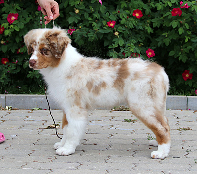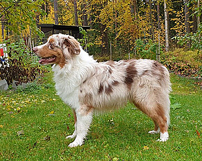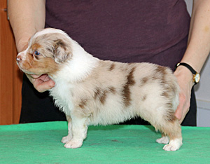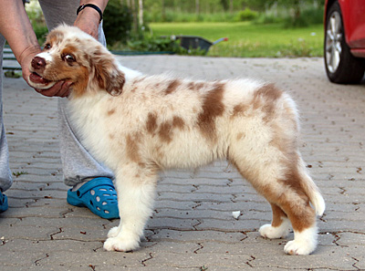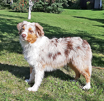 Syntynyt: 01.03.19 Sukupuoli: uros HD: A-A OD: 0-0 Silmät: HSF-4, CEA vapaa vanhempien kautta, ICO vasemmassa silmässä Häntä: pitkä | Väri: red merle Silmien väri: ruskeat + marmorointia Purenta: vinopurenta, puuttuu 2xP3 Koko: 36cm 3,5-kuisena, 53,5cm 12-kuisena Omistaja: Johanna Hyytiäinen, Lahti |