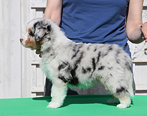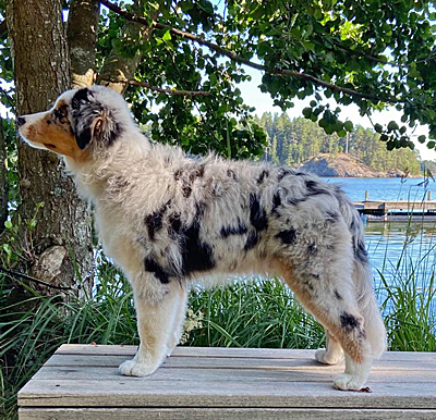 Syntynyt: 11.03.21 Sukupuoli: uros HD: B-A OD: 0-0 Silmät: HC, PRA, CEA, ICO vapaa pentuna Häntä: pitkä | Väri: blue merle Silmien väri: ruskeat Purenta: leikkaava purenta, kaikki hampaat Koko: Omistaja: Nea Nasib, Helsinki |
