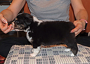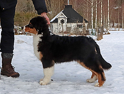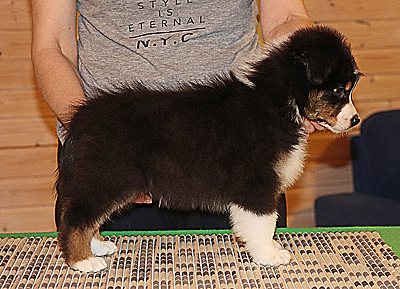 Syntynyt: 04.10.22 Sukupuoli: uros HD: B-B OD: 1-0 Silmät: HC, PRA, CEA, ICO vapaa pentuna Häntä: pitk� | Väri: black tricolour Silmien väri: ruskeat Purenta: leikkaava purenta, kaikki hampaat Koko: 34cm 3-kuisena, 40cm 4-kuisena, 43cm 5-kuisena, 47cm 6-kuisena Omistaja: Milla Vasama, Saukkola |