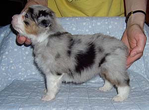 Syntynyt: 29.04.04 Sukupuoli: narttu HD: B-B OD: 0-0 Silmät: vasen tulkinnanvarainen CEA/trauma, oikea terve, HSF4-tyypin HC:stä terve vanhempien kautta Häntä: pitkä | Väri: blue merle Silmien väri: ruskeat Purenta: leikkaava purenta, kaikki hampaat Koko: 34,5 cm 3-kuisena, 44 cm 5-kuisena, 49,5 cm 10-kuisena Omistaja: Marianne Mannila, Helsinki |