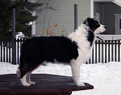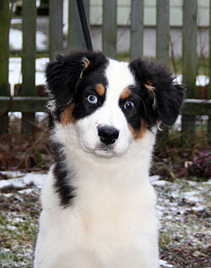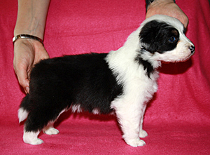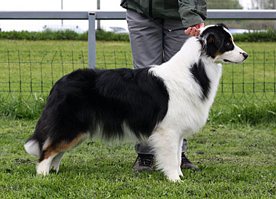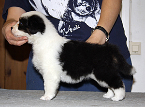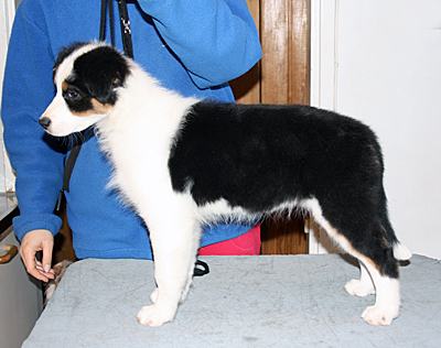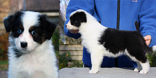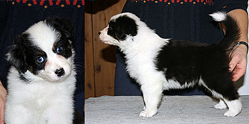 Syntynyt: 05.09.11 Sukupuoli: narttu HD: A-A OD: 0-0 Silmät: HSF-4 vapaa vanhempien kautta, HC, CEA, PRA, ICO vapaa Häntä: pitkä | Väri: black tricolour Silmien väri: vasen kaksivärinen, oikea sininen Purenta: leikkaava purenta, kaikki hampaat Koko: 35cm 3-kuisena, 42cm 4-kuisena, 46cm 5-kuisena, 47,5cm 6-kuisena Omistaja: Marju Porokari, Veikkola |