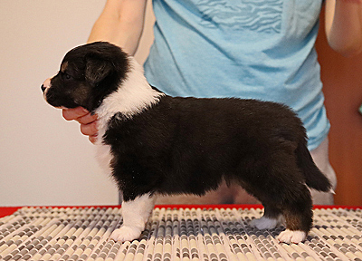 Syntynyt: 13.12.21 Sukupuoli: narttu HD: A-A OD: 0-0 Silmät: HSF-4, CEA vapaa vanhempien kautta, ICO vapaa pentuna Häntä: pitkä | Väri: black tricolour Silmien väri: ruskeat Purenta: leikkaava purenta, kaikki hampaat Koko: 47cm 7-kuisena Omistaja: Fanni Suokko & Nico Nieminen, Espoo |