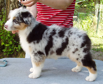 Syntynyt: 09.05.05 Sukupuoli: narttu HD: A-A OD: 0-0 Silmät: HC, PRA, CEA, ICO vapaa sekä pentuna että aikuisena, DNA testattu terveeksi HSF4-tyypin kaihista Häntä: NBT ½ | Väri: blue merle Silmien väri: merle silmät Purenta: leikkaava purenta, kaikki hampaat Koko: 37,5 cm 3-kuisena, 42,5 cm 4-kuisena, 47cm 5-kuisena, 49 cm 6-kuisena, 50 cm 8-kuisena, 50,5 cm 24-kuisena Omistaja: Tuula Korhonen, Riekonhovin aussiet, Jokihaara |