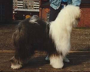 Född: 17.06.83 Sex: tik HD: 0-1 OD: oröntgad Ögon: HC-PRA fri | Färg: född svart-vit Ögon färg: 1 blått, 1 brunt öga med full pigmentering Bett: fullständigt saxbett Mankhöjd: 57 cm Ägare: Sirpa & Raimo Virta, Current's OES, Vanda |